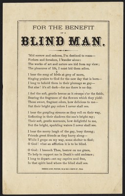 Credit: For the benefit of a blind man. Source: Wellcome Collection.