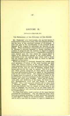 The Hunterian lectures on the renal function in its relation to surgery : delivered before the Royal College of Surgeons of England / by J.W. Thomson Walker.