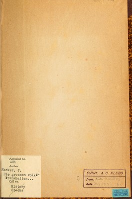 Die grossen Volkskrankheiten des Mittelalters : Historisch-pathologische Untersuchungen / von J.F.C. Hecker. Gesammelt und in erweiterter Bearbeitung herausgegeben von Dr. August Hirsch.