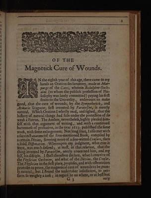 Credit: A ternary of paradoxes. The magnetick cure of wounds, nativity of tartar in wine, image of God in man / Written originally by Joh. Bapt. van Helmont, and translated, illustrated, and ampliated by Walter Charleton. Source: Wellcome Collection.