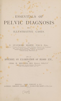 Essentials of pelvic diagnosis with illustrative cases : and an appendix on examination of blood, etc / by E. Stanmore Bishop Chas ... ... Chas. H. Melland.