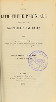 Credit: De la lithotritie périnéale, ou, Nouvelle manière d'opérer les calculeux / par M. Dolbeau. Source: Wellcome Collection.