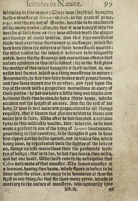 Credit: Certaine secrete wonders of nature, containing a descriptiõ of sundry strange things, seming monstrous in our eyes and iudgement, bicause we are not priuie to the reasons of them. Gathered out of diuers learned authors as well Greeke as Latine, sacred as prophane / [By Pierre Boaistuau. Translated] By E. Fenton. Source: Wellcome Collection.
