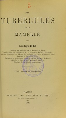 Credit: Des tubercules de la mamelle / par Louis-Eugène Dubar. Source: Wellcome Collection.