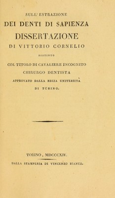 Sull'estrazione dei denti di sapienza : dissertazione / di Vittorio Cornelio.