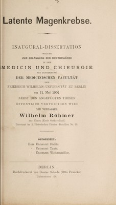 Latente Magenkrebs ... / Wilhelm Röhmer.