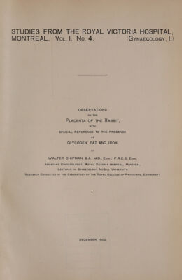 Observations on the placenta of the rabbit : with special reference to the presence of glycogen, fat and iron / by Walter Chipman.