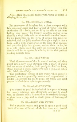 Credit: The cook's guide and housekeeper's & butler's assistant : a practical treatise on English and foreign cookery in all its branches, containing plain instructions for pickling and preserving vegetables, fruits, game, &c, the curing of hams and bacon, the art of confectionery and ice-making, and the arrangement of desserts, with valuable directions for the preparation of proper diet for invalids, also for a variety of wine-cups and epicurean salads, American drinks, and summer beverages / by Charles Elmé Francatelli. Source: Wellcome Collection.