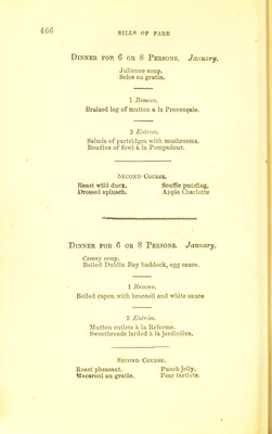 Credit: The cook's guide and housekeeper's & butler's assistant : a practical treatise on English and foreign cookery in all its branches, containing plain instructions for pickling and preserving vegetables, fruits, game, &c, the curing of hams and bacon, the art of confectionery and ice-making, and the arrangement of desserts, with valuable directions for the preparation of proper diet for invalids, also for a variety of wine-cups and epicurean salads, American drinks, and summer beverages / by Charles Elmé Francatelli. Source: Wellcome Collection.
