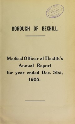 Credit: [Report 1905] / Medical Officer of Health, Bexhill U.D.C. Borough. Source: Wellcome Collection.