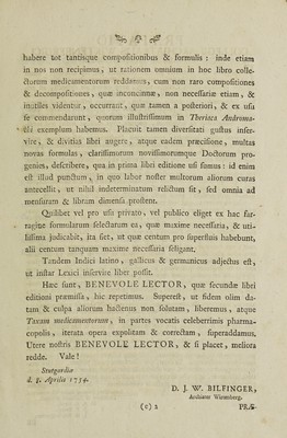 Pharmacopoea Wirtenbergica, in duas partes divisa, quarum priot materiam medicam historico-physico-medice descriptam posterior composita et preparata modum prae parandi et encheireses exhibit ... Jussu ... domini ducis adornata et pharmacopoeis Wirtenbergicis in normam praescripta. Accedunt syllabus medicamentorum compositorum, in classes divisus, et indices necessarii.