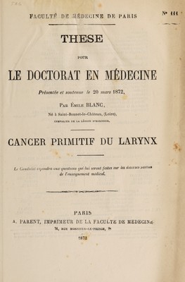 Credit: Cancer primitif du larynx ... / par Émile Blanc. Source: Wellcome Collection.