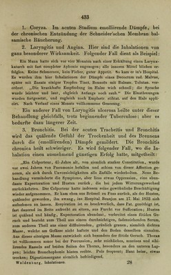 Die Inhalationen der zerstäubten Flüssigkeiten sowie der Dämpfe und Gase in ihrer Wirkung auf die Krankheiten der Athmungsorgane : Lehrbuch der respiratorischen Therapie.