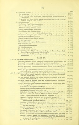 ![PAGE ii.—London Borough Councils 71 [57] Relief works put in hand for many years up to 1905 71 [87] „ „ diminished after passage of Unemployed Workmen's Act - - - 71 [<?7] Two cases of overlapping 72 [88] Difficulty of investigation by the borough councils 72 [88] and (b) Provincial councils and distress committees 72 [88] Mayor's funds frequent 72 [88] More co-operation between various agencies than in London . . . . 73 [89] Amalgamation of distress committees and labour exchanges 73 [89] Investigation rarely thorough 74 [00] Usual ground of selection, destitution and a large family ----- 74 [00] Work generally not for a continuous pariod of several weeks, as in London - - 7-1 [90] .—Trade Unions 75 [91] Unemployed benefit paid by larger unions and those of highly skilled trades - 75 [91] Travelling bjnafit for men for whom places are found by their union in new localities 75 [91] Amounts paid in unemployed benefit by 100 principal unions, betwoenl895 and 190-i 76 [92] ., „ per head in 100 unions and in certain trades among them - 76 [92] „ ,, compared with membership 76-77 [92-93] Mr. Charles Booth's analysis of unemployed benefit paid by London Society of Compositors 77 [93] Many trade unions do not pay unemployed benefit 78 [94-] Report of Conference of General Federation of Trade Unions with Committee of Trade Union Congress and Labour Members of Parliament (Jan. 1905) - 78 [94] Causes discussed and suggestions made for diminishing unemployment - - 79 [95] Report of Parliamentary Committee to the Trade L^nion Congress (Sept. 1906) - 79 [9o] Claim to have effected alteration of record papers 80 [96] This alteration inconsistent with previously expressed trade union principles - 80 [96] The best arrangements—those made by the unions themselves - - - - 80 [96] The question of unions of unskilled workers gl [97] Child labour and extension of education 81 \97] Future policy—what is it to be ? 81 [97] Quarterly report of General Federation of Trade Unions (1906), wages, regulation of hours of labour, and distribution of work ------- 82 [98] i). i.—The Salvation Army scheme (1890) 83 [99] No statistics furnished of the working of the scheme . . . - . g3 [gg] The Army weak in East London and their independent work small - - - 83 [99] The Hadleigh Farm Colony 83 [99] Work in connection with other societies on business lines .... 83 [99~\ „ „ „ Poor Law Guardians (Stepney) - - - - 84 [1001 „ „ „ emigration 84-85 [100-101] The ' Elevator ' workshops and shelters 85-86 [101-102] The labour bureau - - . -• 86 [102] ii. —The Church Army 86 [102] The labour tents and homes 86-87 [102-103] Summary of cases assisted in 1905 87 [103] The general plan of the work - 87-88 [103-104] Wood chopping and paper sorting 88 [IO4] Particulars of labour homos (London) - - - - - - - -89 [105] Emigration 89 [105] Particulars of home land colonies 89-90 [105-106] Considerable activity in Manchester, Newcastle, and other provincial towns - 90 [106] iii. —The Jewish Boards of Guardians 91 [107] Their work in London 91 [i^?/ ]. „ „ Manchester 91-92 [107-108], iv. —Newspaper funds 92-93 [108-1091 Methods of Daily Mirror 92 [108} V.—Various agencies recei%-ing grants from the Queen's Fund 93 [109] Little information as to special local relief funds - - - - - - 93 [109]](https://iiif.wellcomecollection.org/image/b24399991_0013.jp2/full/800%2C/0/default.jpg)