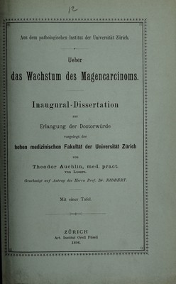 Credit: Über das Wachstum des Magencarcinoms / von Theodor Auchlin. Source: Wellcome Collection.