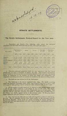 The Straits Settlements medical report.