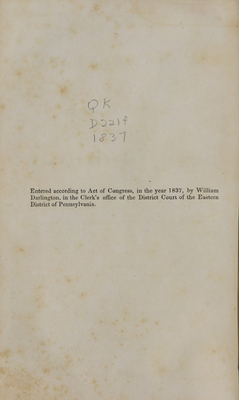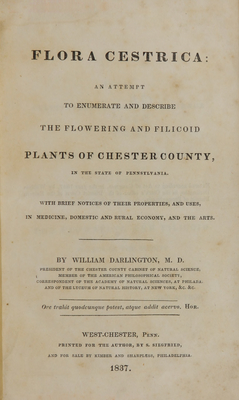 Flora cestrica : an attempt to enumerate and describe the flowering and filicoid plants of Chester County in the state of Pennsylvania : with brief notices of their properties and uses, in medicine, domestic and rural economy, and the arts / by William Darlington.