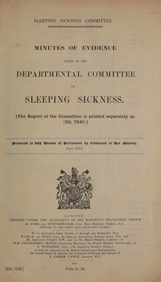Minutes of evidence taken by the Departmental Committee on Sleeping Sickness.