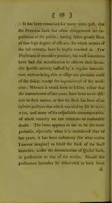 Credit: Observations on the superior efficacy of the red Peruvian bark, in the cure of agues and other fevers. Interspersed with occasional remarks on the treatment of other diseases, by the same remedy / by William Saunders. Source: Wellcome Collection.