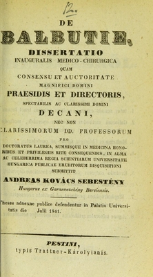 De balbutie : dissertatio inauguralis medico-chirurgica ... / submittit Andreas Kovács Sebestény = A hebegésrol ; értekezik Kovács Sebestény Endre.