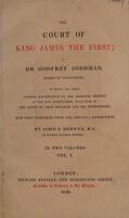 The court of King James the First / by Dr. Godfrey Goodman, Bishop of Gloucester; to which are added, letters illustrative of the personal history of the most distinguished characters in the court of that monarch and his predecessors. Now first published from the original manuscripts. By John S. Brewer. Public Domain Mark. Source: Wellcome Collection.
