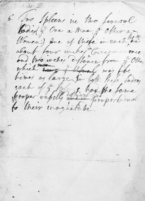 Credit: M0016832: Manuscript notes by William Cheselden (1688-1752) concerning multiple spleens. Source: Wellcome Collection.