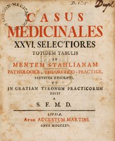 Casus medicinales XXVI selectiores totidem tabulis ad mentem Stahlianam ... / descripti, et ... editi a S.F.M.D. Public Domain Mark. Source: Wellcome Collection.