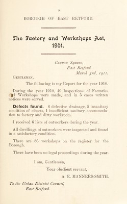 Credit: [Report 1910] / Medical Officer of Health, East Retford U.D.C. / Borough. Source: Wellcome Collection.