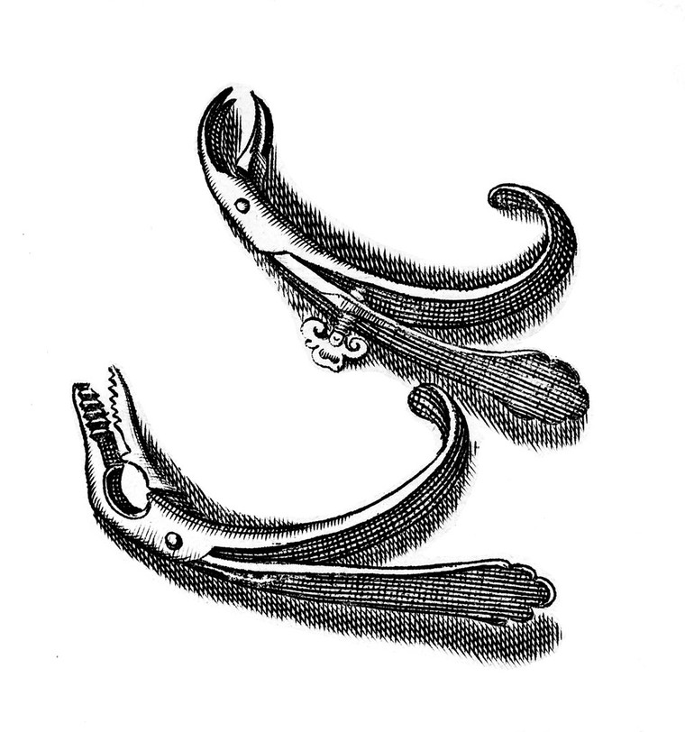 M0013407: Illustration of dental forceps. Public Domain Mark. Source: Wellcome Collection.