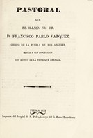 Pastoral que el illmo. sr. dr. D. Francisco Pablo Vazquez, obispo de la Puebla de los Angeles, dirige a sus diocesanos con motivo de la peste que amenaza. Public Domain Mark. Source: Wellcome Collection.