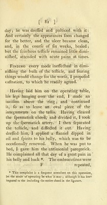 Credit: Observations on the different methods made use of for the radical cure of the hydrocele, or watry rupture, and on other diseases of the testicle : to which is added a comparative view of the different methods of cutting for the stone, with some remarks on the medicines generally exhibited as solvents of the stone / by William Dease. Source: Wellcome Collection.