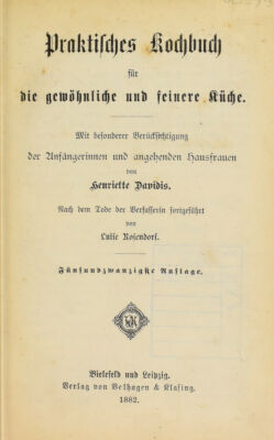 Praktisches Kochbuch für die gewöhnliche und feinere Küche : mit besonderer Berücksichtigung der Anfängerinnen und angehenden Hausfrauen ... / nach dem Tode der Verfasserin fortgeführt von Luise Rosendorf.