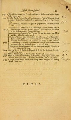 Bibliotheca Beauclerkiana. A catalogue of the ... library of the late Honourable Topham Beauclerk, F.R.S., deceased; comprehending an excellent choice of books, to the number of upwards of thirty thousand volumes ... which will be sold by auction ... by Mr. Paterson ... April 9, 1781, and theforty-nine following days (Good Friday excepted) / [Topham Beauclerk].