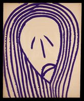 Purple face with downturned mouth surrounded by rounded lines. In copyright. Source: Wellcome Collection.