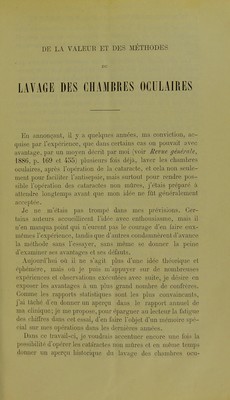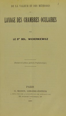 De la valeur et des méthodes du la vage des chambres oculaires / par Le Dr. Bol. Wicherkiewicz.