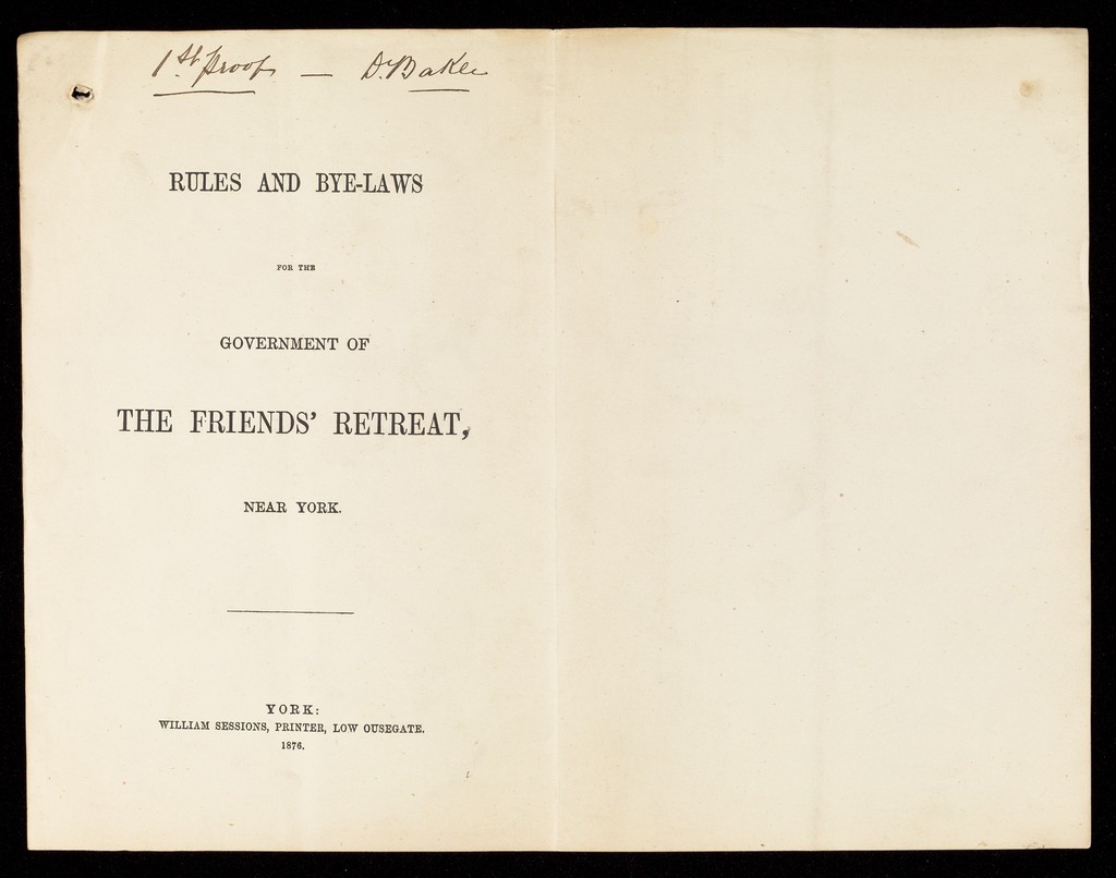 Rules and Bye-Laws for the Government of the Friends' Retreat near York