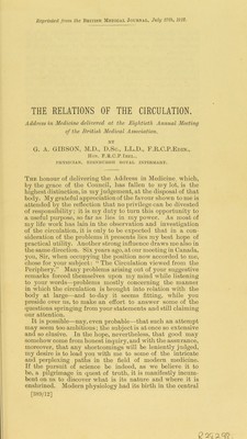 The relations of the circulation : address in medicine delivered at the Eightieth Annual Meeting of the British Medical Association / by G. A. Gibson.