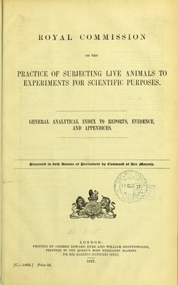 Report of the Royal Commission on the practice of subjecting live animals to experiments for scientific purposes : with minutes of evidence and appendix.