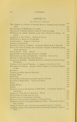 ![Note. GROWTH OF ORGANS WITH EXERCISE. Why do Organs Grow with Exercise ? Herbert Spencer’s Theory.—Woody Fibre Possible Nervous Action in Increasing Nutrition in exercised parts . Increased Flow of Blood to exercised parts possibly due to Eelaxatiou of the Nerves of the Arteries . ...... CHAPTER X. THE PROBLEM OF THE ORIGIN OF SPECIES. The Origin of Species is a distinct question from that of Life The Theory of Evolution, i.e. that all Species are descended from a few original Germs The Arguments for Evolution are not fully stated here .... I believe in Evolution, but differ from Darwin, in that I also believe in a Guiding Intelligence .......... The Analogy of Individual Development is in Favour of Evolution . Evolution is not Contrary to Experience. Changes in Language Why the Theorj’ of Evolution has not been earlier admitted Evolution explains Classification ........ Limitations of the Principle above stated . . . . . . . Crystalline and Organic Species ........ Transitional Forms are often still in Existence, but mostly Lost Imperfection of the Geological Record ....... Destruction of Fossils. Denudation. Metamorphism .... Discovery of Intermediate Forms. Reptilian Birds The Arguments from Classification and from Transitional Forms support each other Objection, that these Prove only the Limitation of the Number of Possible Modifications Reply;—the Number 'of Modifications is not Limited by any Mechanical Necessity Full Title of Darwin’s work ....... Darwin’s Theory as accounting for Improvement ..... Darwin’s Theory as accounting for Divergence Summary of Darwin’s Theory Natural Selection is a Real Agent, whether All-explaining or not Conservative Effect of Natural Selection Changes of Circumstances in Geological Time will Promote Organic Change Argument against Evolution from the Invariability of Minute Structure.— Dr. Beale on this Subject Reply Structure is ])robably Variable, but Ic.ss so than Form 1 instance of the Ptcrodactylc’s Bone PAGE 111 111 112 113 113 114 114 114 115 115 116 116 116 117 117 117 119 119 119 120 120 120 121 122 122 122 123 124 125 126](https://iiif.wellcomecollection.org/image/b28107755_0019.jp2/full/800%2C/0/default.jpg)