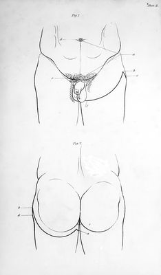 Credit: M0018012: Two diagrams relating to gun-shot wounds to the upper thigh, 1815. Source: Wellcome Collection.