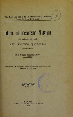 Intorno al meccanismo di azione dei principî tiroidei nella tubercolosi sperimentale / Cesare Frugoni.