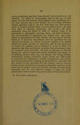 The etiology of chronic hernia : with special reference to the operation for radical cure / by E. Stanmore Bishop.