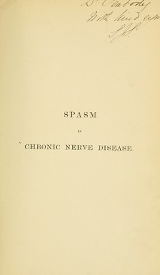 Credit: Spasm in chronic nerve disease : being the Gulstonian lectures delivered at the Royal College of Physicians of London, March 1886. Source: Wellcome Collection.