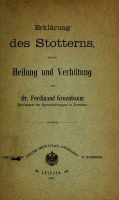 Erklärung des Stotterns : dessen Heilung und Verhütung / von Dr. Ferdinand Gruenbaum.