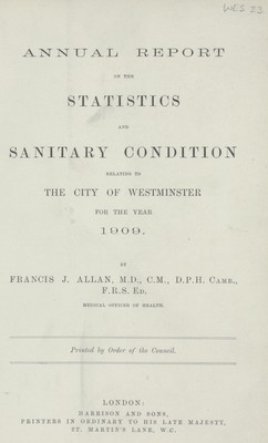 [Report of the Medical Officer of Health for Westminster, City of].