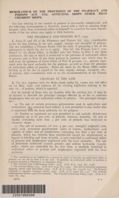 Memorandum on the provisions of the Pharmacy and Poisons Act, 1933, affecting shops other than chemists' shops.