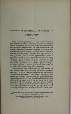 Chronic interstitial nephritis in childhood : a paper read before the Harveian Society of London on Nov. 19th, 1896 / by Leonard G. Guthrie.
