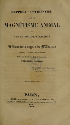 Credit: Rapport confidentiel sur le magnétisme animal et sur la conduite récente de l'Académie royale de médecine : adressé à la Congrégation de l'Index / et traduit de l'italien du R.P. Scobardi par Ch. B., D.-M.-P. Source: Wellcome Collection.