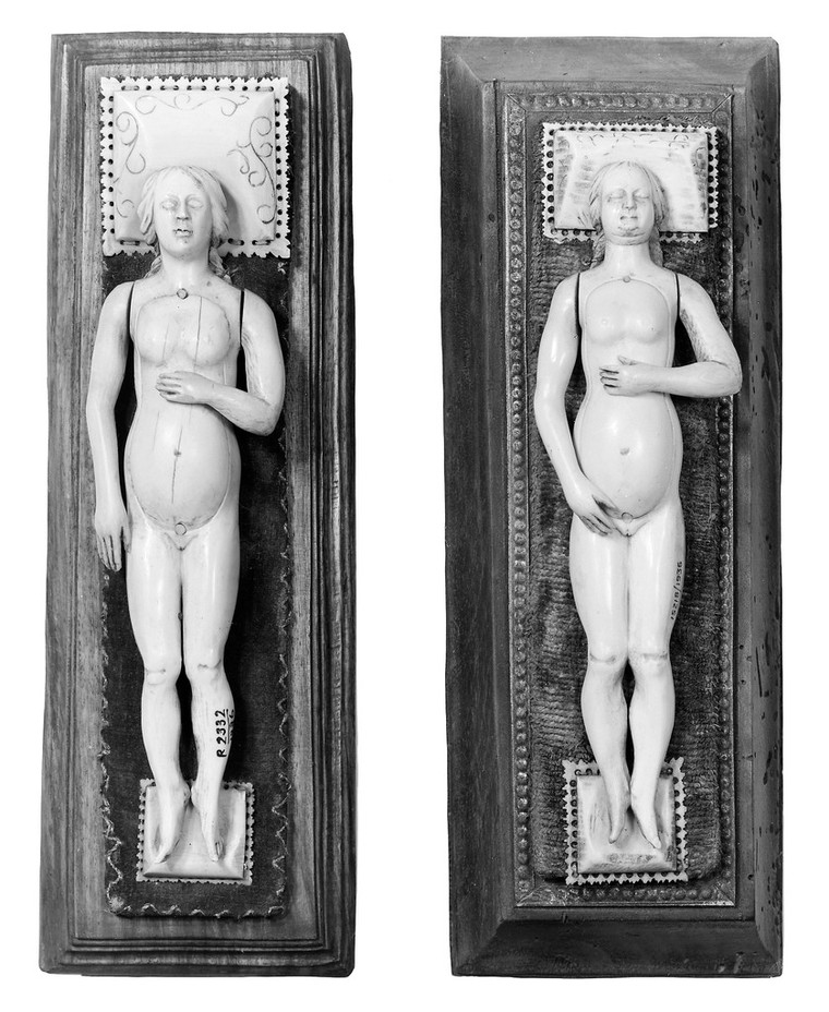 M0018656EA: Anatomical figures in ivory; two pregnant females. Attribution 4.0 International (CC BY 4.0). Source: Wellcome Collection.