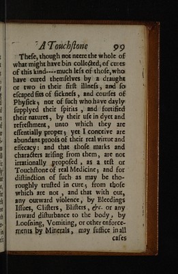 A touch-stone for physick, directing by evident marks and characters to such medicines, as without purgers, vomiters, bleedings, issues, minerals; or any other disturbers of nature, may be securely trusted for cure in all extreamities, and be easily distinguished from such as are hazardous ... exemplyfied by ... remarkable cures / [William Walwyn].